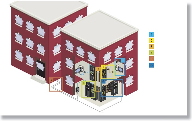 设备间子系统主要由共享和共用设备 , 和用于连接上述设备的线缆组成。设备间子系统包括线缆 , 连接器及其他辅助硬件系统 ,它们用于连接共享和共用设备到主配线系统。